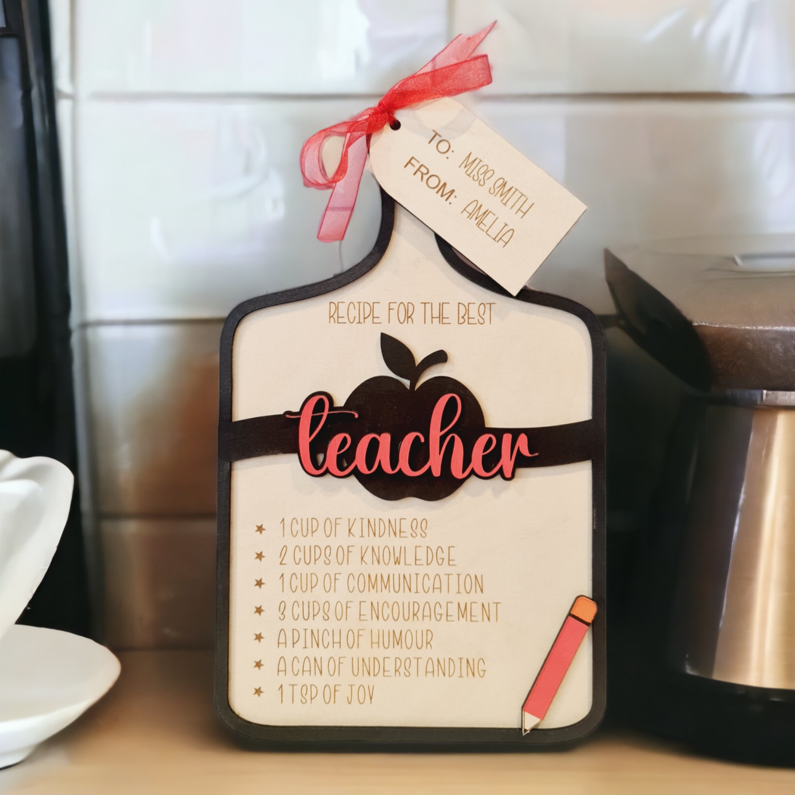 - Laser cut engraving of the recipe for the best teacher ever